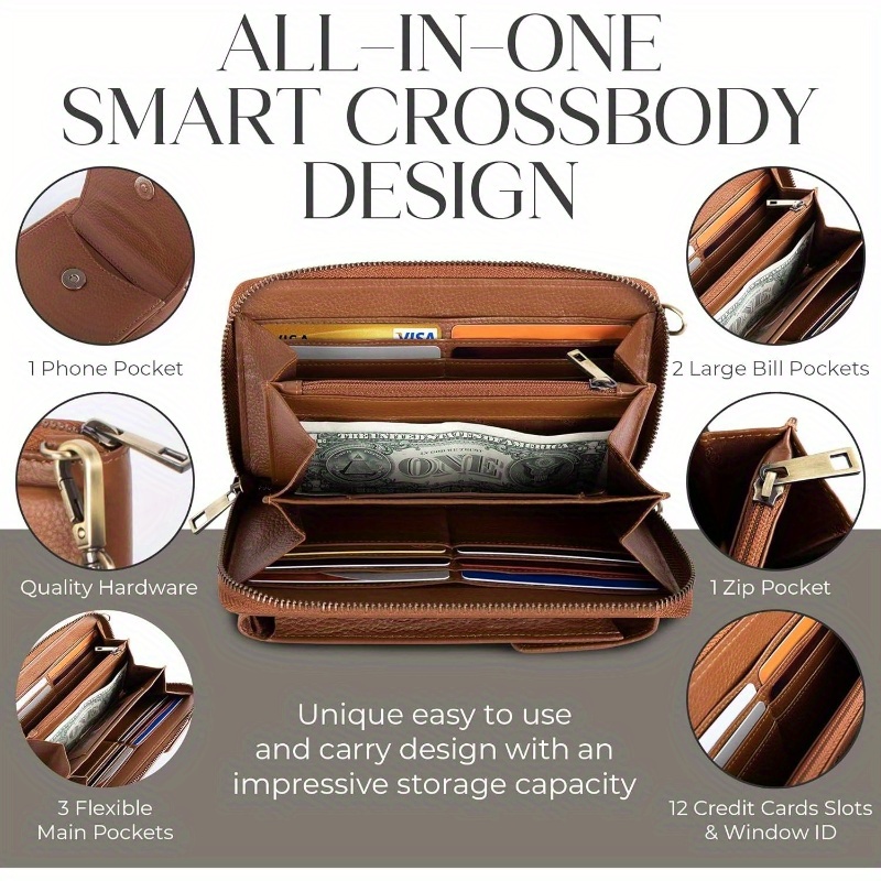 Crossbody Faux Leather Wallet Phone Purse, Anti Theft and RFID Blocking, Small Elegant Design for Travel